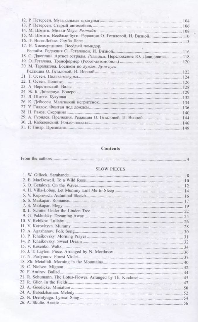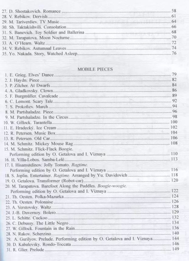 Tajā iekļauti skaņdarbi lēnos un kustīgos tempos 4.-5. klasei, kas pārstāv pedagoģiskā repertuāra "zelta fondu", mazpazīstami skaņdarbi, kā arī dažādu stilu un žanru krievu un ārzemju komponistu novitātes. Katrā nodaļā nošu materiāls ir sistematizēts un sakārtots augošā grūtības pakāpes secībā.