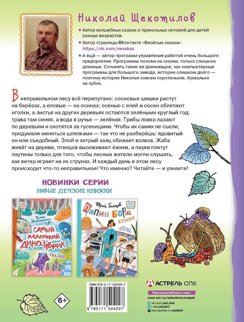 Autors Nikolajs Ščekotilovs radīja (vai ne?) brīnišķīgu vietu – maģisku mežu, kur notiek visādas lietas un katru dienu viss ir jauns. Piemēram, tur dzīvo nerātns zaķis, kas terorizē vilkus, un upes vāveres, kas māca bebriem peldēt. Skudras lido bitēm virsū, un sēnes maina cepures, lai netiktu apēstas. Desmitiem brīnišķīgu notikumu risinās ik uz soļa!