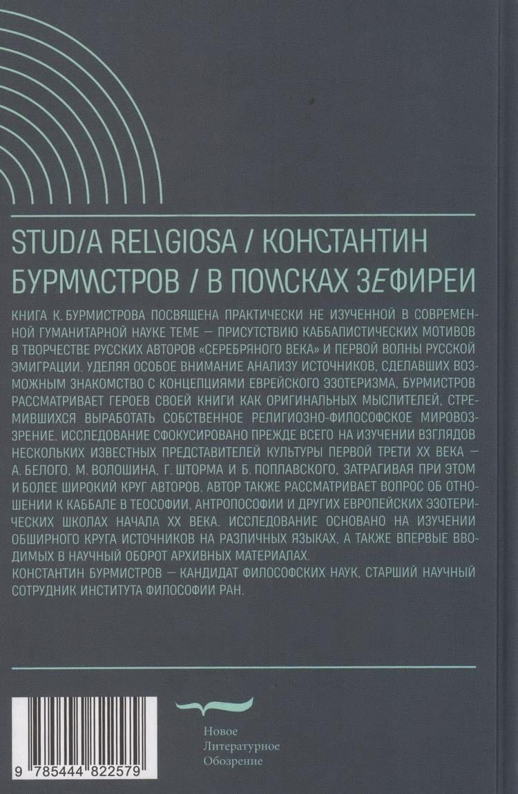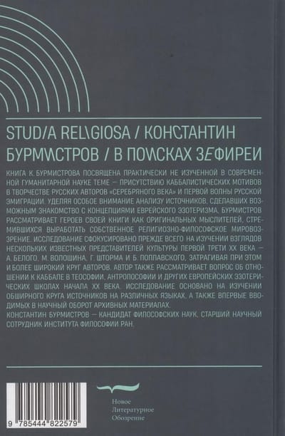 K. Burmistrova grāmata ir veltīta tēmai, kas mūsdienu humanitārajās zinātnēs praktiski nav pētīta: kabalistisko motīvu klātbūtnei krievu autoru darbos Sudraba laikmetā un pirmajā krievu emigrācijas vilnī. Pievēršot īpašu uzmanību avotu analīzei, kas ļāva iepazīties ar ebreju ezotērikas jēdzieniem, Burmistrovs uzskata savas grāmatas varoņus par oriģināliem domātājiem, kuri centās attīstīt savu reliģisko un filozofisko pasaules uzskatu.