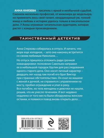 Taču viņas atvaļinājums bija jāatliek steidzama uzdevuma dēļ: pulkvedis Saveļjevs bija nosūtījis viņu uz mazpilsētu Urutinu, lai izmeklētu senu lietu. Tā bija personiska lieta: pirms divdesmit gadiem tur dīvainos apstākļos nomira viņa brālis Viktors. Viņš brauca ar sievu un meitu, kad zaudēja kontroli pār automašīnu uz tilta, ietriecās aizsargbarjerā un iekrita upē. Visi gāja bojā, bet sievietes un meitenes līķi nekad netika atrasti, jo tika pieņemts, ka tos aiznesusi straume. Tad nesen netālu no šīs vietas tika atrastas sieviešu mirstīgās atliekas, kas pamudināja lietu atsākt...