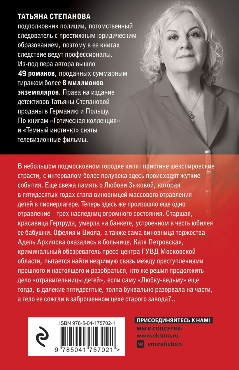 Mazā pilsētiņā netālu no Maskavas kūsā īstas Šekspīra kaislības, un šausminoši notikumi šeit risinās ar vairāk nekā pusgadsimta starplaiku. Joprojām svaigas ir atmiņas par Ļubovu Zikovu, kura piecdesmitajos gados bija atbildīga par bērnu masveida saindēšanu pionieru nometnē. Tagad notika vēl viena trīs milzīga īpašuma mantinieču saindēšana. Vecākā, skaistākā Ģertrūde, nomira banketā, kas tika rīkots par godu viņas vecmāmiņas jubilejai. Ofēlija un Viola, kā arī pati svinību vaininiece Adele Arhipova nonāca slimnīcā. Maskavas apgabala policijas pārvaldes preses centra kriminālizmeklētāja Katja Petrovskaja cenšas atrast neredzamu saikni starp pagātnes un tagadnes noziegumiem un saprast, kas nolēma turpināt "bērnu indētājas" lietu, ja pašu "raganiņu Ļubku" vēl tālajos piecdesmitajos gados pūlis burtiski saplosīja un viņas līķi sadedzināja vecas rūpnīcas pamestā cehā?