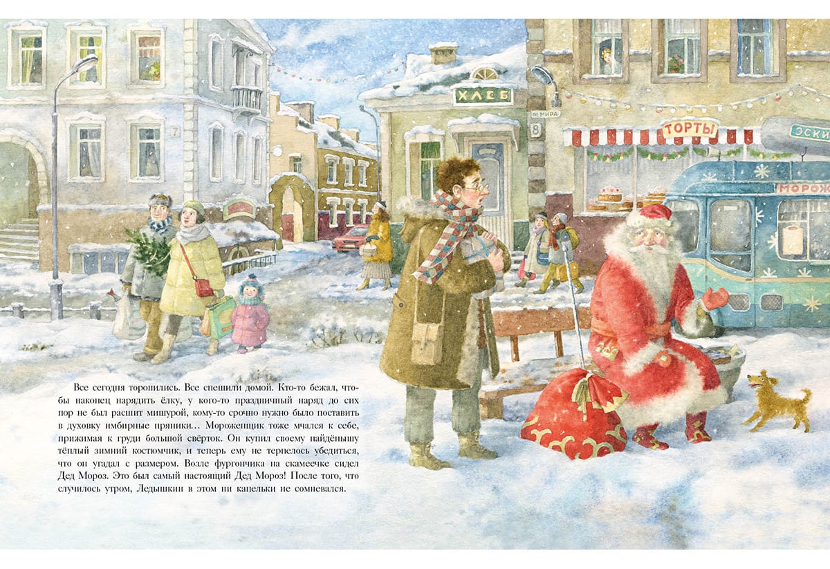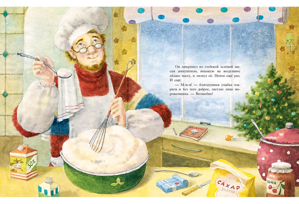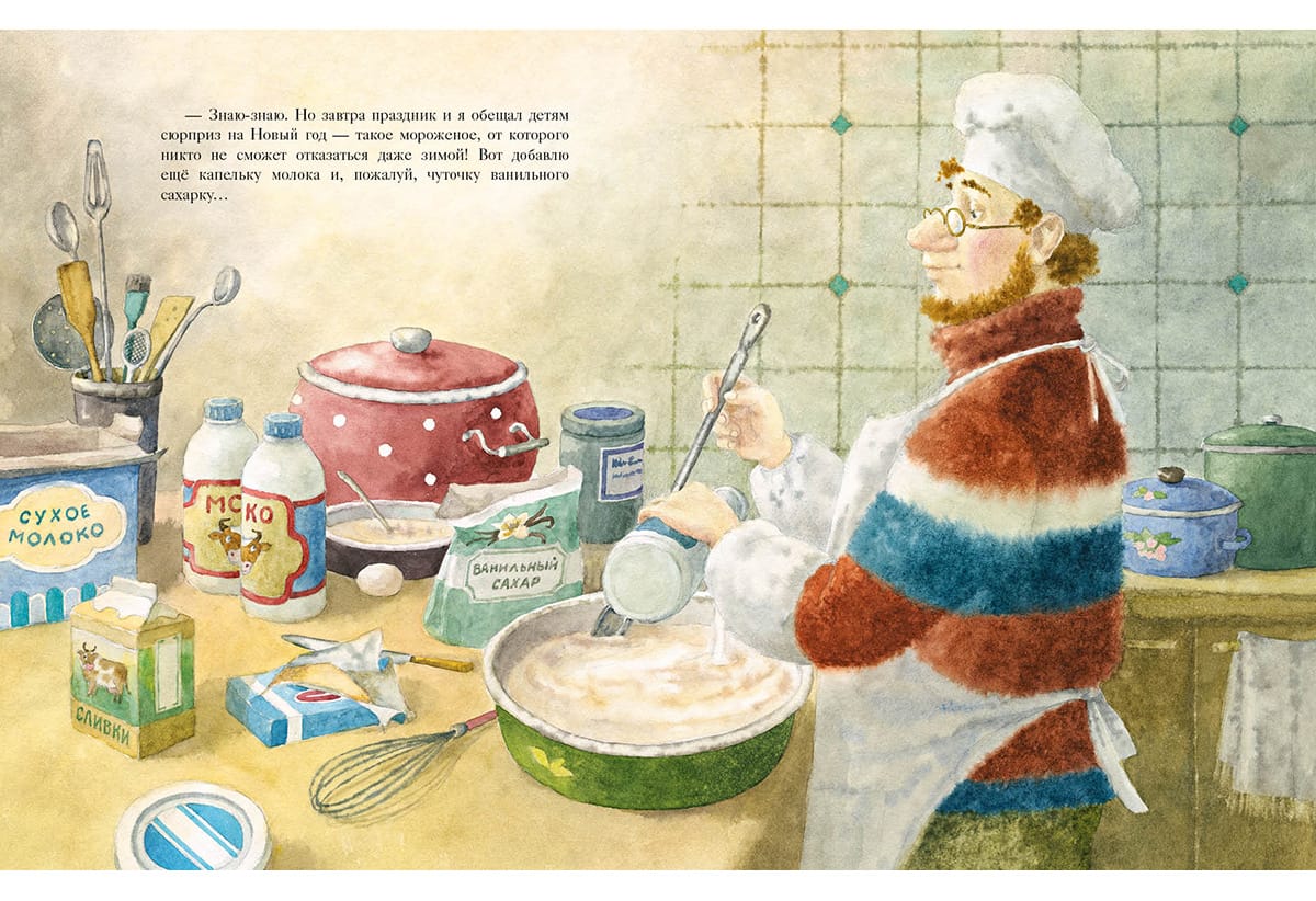 Vai esat kādreiz nogaršojuši popsi, kas nes veiksmi un labu garastāvokli? Ivans Ivanovičs Ļediškins gatavo labāko saldējumu pilsētā. Viņš ir arī lielisks izgudrotājs! Un uz Jauno gadu Ļediškins sapņo visiem pagatavot visgaršīgāko vaniļas saldējumu! Taču viņu gaida īsts pārsteigums... Šo apbrīnojamo burvju stāstu ilustrējusi talantīgā māksliniece Marija Korotajeva.