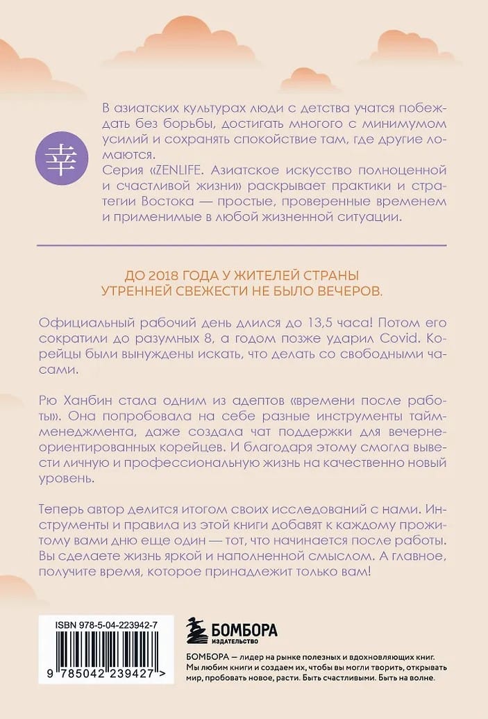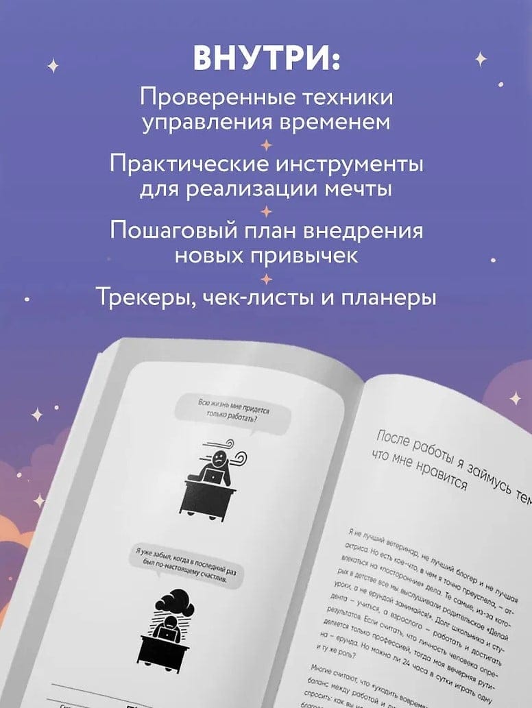 Tagad autore dalās ar mums savu pētījumu rezultātos. Šajā grāmatā sniegtie rīki un noteikumi katrai jūsu dzīvei pievienos vēl vienu dienu — to, kas sākas pēc darba. Jūs padarīsiet savu dzīvi dinamisku un jēgpilnu. Un pats galvenais — jūs iegūsiet laiku, kas pieder tikai jums!