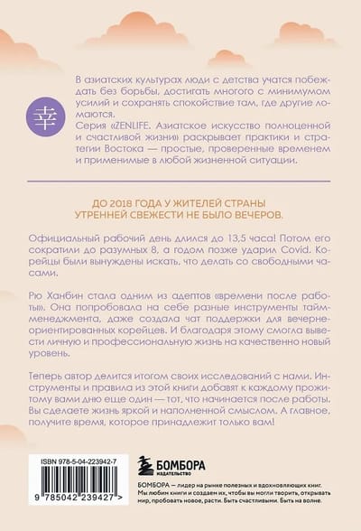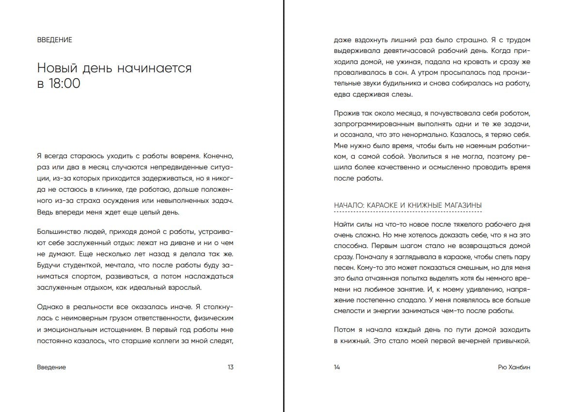 Rju Hanbina kļuva par vienu no "laika pēc darba" atbalstītājām. Viņa izmēģināja dažādus laika pārvaldības rīkus un pat izveidoja atbalsta tērzēšanu korejiešiem, kas orientēti uz vakara aktivitātēm. Un, pateicoties tam, viņa spēja pacelt savu personīgo un profesionālo dzīvi pilnīgi jaunā līmenī.