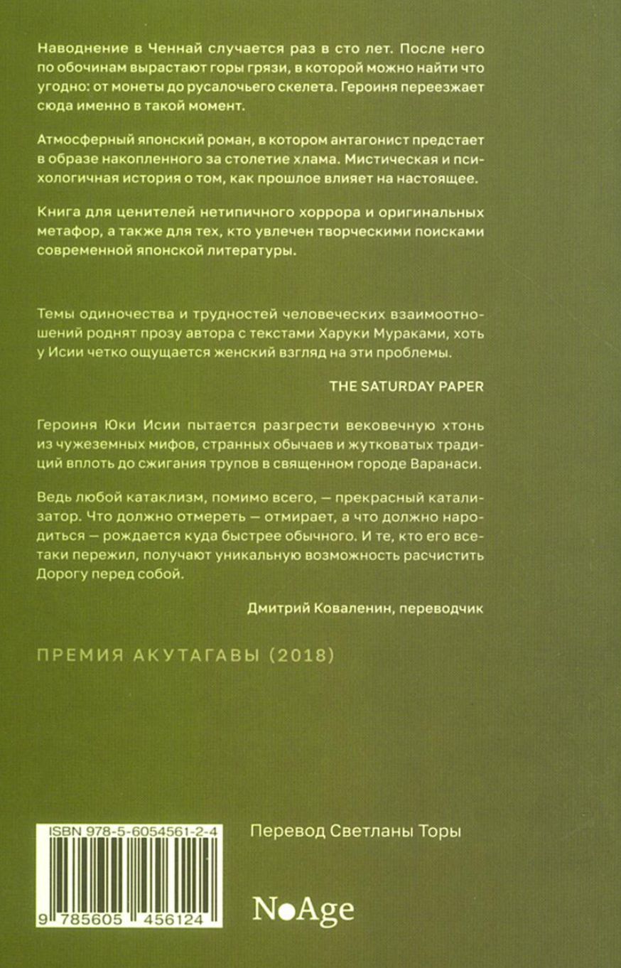 Atmosfērisks japāņu romāns, kurā antagonists ir gadsimtu uzkrāti atkritumi. Mistisks un psiholoģisks stāsts par to, kā pagātne ietekmē tagadni. Grāmata netradicionālu šausmu un oriģinālu metaforu pazinējiem, kā arī tiem, kurus fascinē mūsdienu japāņu literatūras radošie atklājumi.