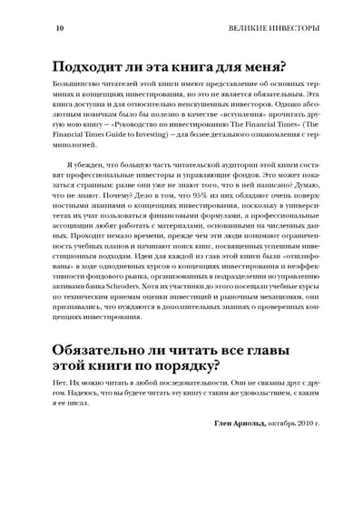 Ir daži īpaši cilvēki, kuriem, šķiet, ir izcils talants bagātības iegūšanai. Tādi vadošie investori kā Vorens Bafets, Bendžamins Grehems, Džons Templtons, Džordžs Soross un Entonijs Boltons ir pazīstami visā pasaulē. Kā viņi kļuva tik veiksmīgi? Kādas stratēģijas izmantojāt, lai nopelnītu? Kādas personiskās īpašības ļauj viņiem kontrolēt savas emocijas un saprātīgi ieguldīt naudu? Ko mēs no viņiem varam mācīties? Glens Arnolds savā grāmatā īsi un precīzi apraksta pasaules lielāko investoru investīciju filozofiju. Viņš paskaidro, kāpēc viņi ir labākie, dziļi iedziļinoties savā bagātības veidošanas taktikā, un atklāj galvenās metodes, kuras varat izmantot savā ieguldījumu stratēģijā. Neatkarīgi no tā, vai esat iesācējs vai profesionāls investors ar pieredzi veiksmīgā tirdzniecībā tirgū, šī grāmata jums noderēs.