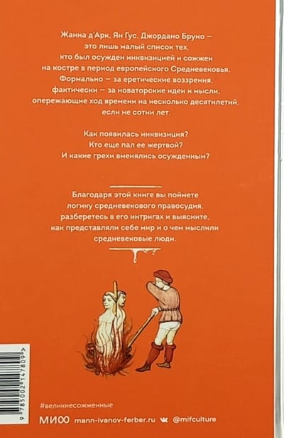 Kā radās inkvizīcija? Kurš vēl kļuva par tā upuri? Un kādi grēki tika apsūdzēti notiesātajiem? Pateicoties šai grāmatai, jūs sapratīsiet viduslaiku taisnīguma loģiku, izpratīsiet tās intrigas un uzzināsiet, kā viņi iedomājās pasauli un par ko domāja viduslaiku cilvēki.