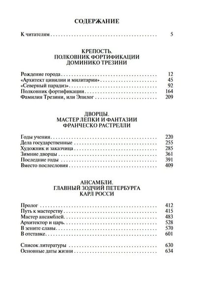 Slavenā krievu vēsturnieka un mākslas zinātnieka Jurija Maksimilianoviča Ovsjaņņikova (1926-2001) grāmata veltīta vienas no skaistākajām pasaules pilsētām - Sanktpēterburgas - veidotājiem. Tajā aizraujoši un vienlaikus stingri dokumentāli stāstīts par trīs izcilu arhitektu likteņiem, par tiem, kas radījuši neatkārtojamo Ziemeļvenēcijas izskatu - Dominiko Trezīni (Dominico Trezzini, 1670-1734), Frančesko Bartolomeo Rastrelli (Francesco Bartolomeo Rastrelli, 1700-1771) un Karlo Rossi (Carlo Rossi, 1775-1849). Viņu celtās ievērojamās ēkas un ansambļi - Pētera un Pāvila cietoksnis, Smoļnija katedrāle, Ziemas pils, Mihailovska pils (tagad Krievijas muzejs), Aleksandrijas teātris, Senāts un Sinode - gadsimtiem ilgi ir rotājuši Sanktpēterburgas ielas un laukumus. Tāpēc šī pilsēta pati ir kļuvusi par vienu no grāmatas varoņiem, kas tagad izdota sērijā "Ievērojamu cilvēku dzīvesstāsti".