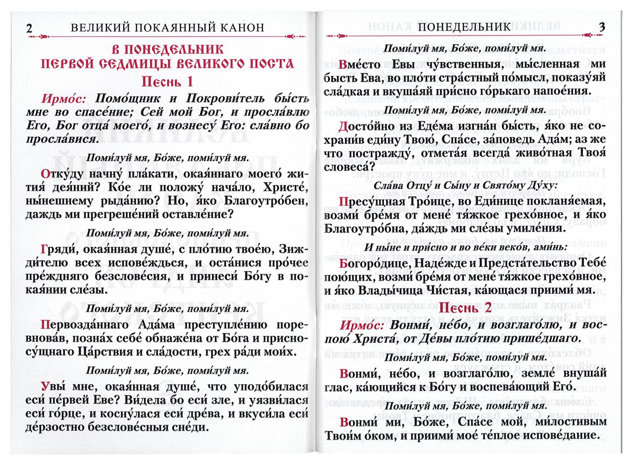 Šajā ērtajā mazā formāta izdevumā Krētas Andreja Lielais grēku nožēlošanas kanons, kas lasīts Lielā gavēņa pirmajā nedēļā, ir iespiests divās krāsās civilā drukā uz augstas kvalitātes krītpapīra.