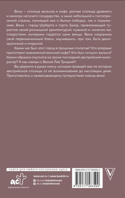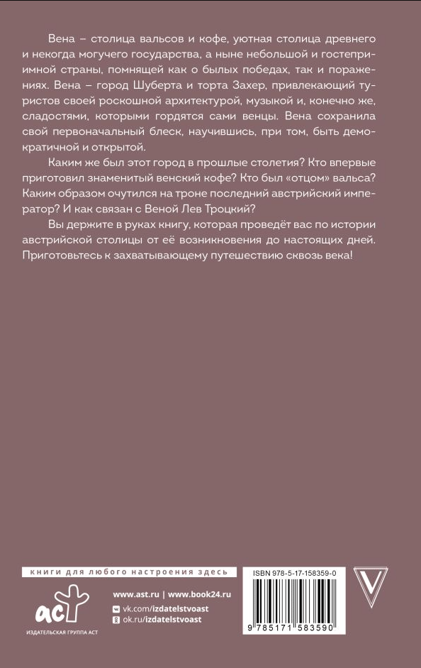 Jūsu rokās ir grāmata, kas jums palīdzēs izzināt Austrijas galvaspilsētas vēsturi no tās pirmsākumiem līdz pat mūsdienām. Gatavojieties aizraujošam ceļojumam cauri gadsimtiem!