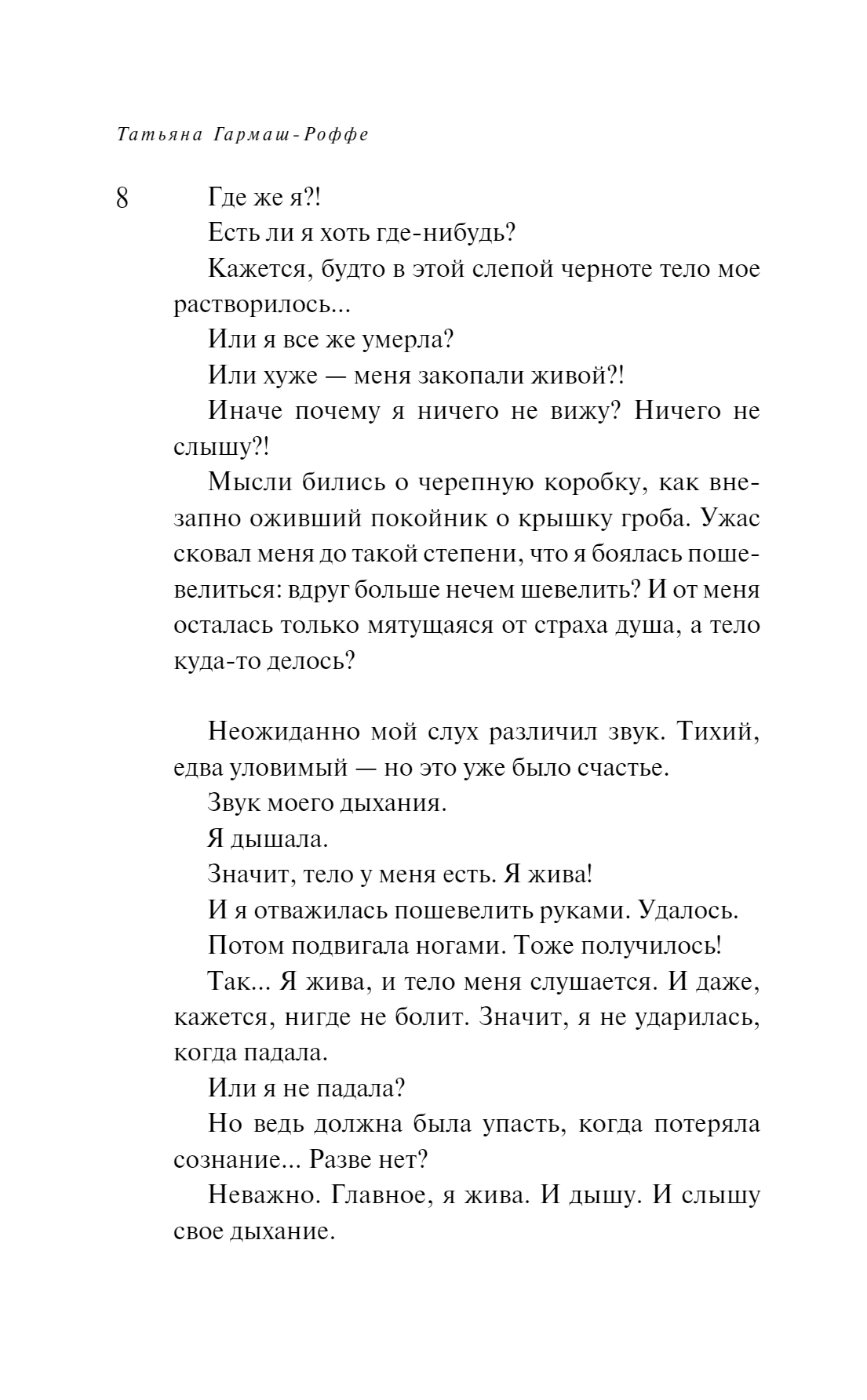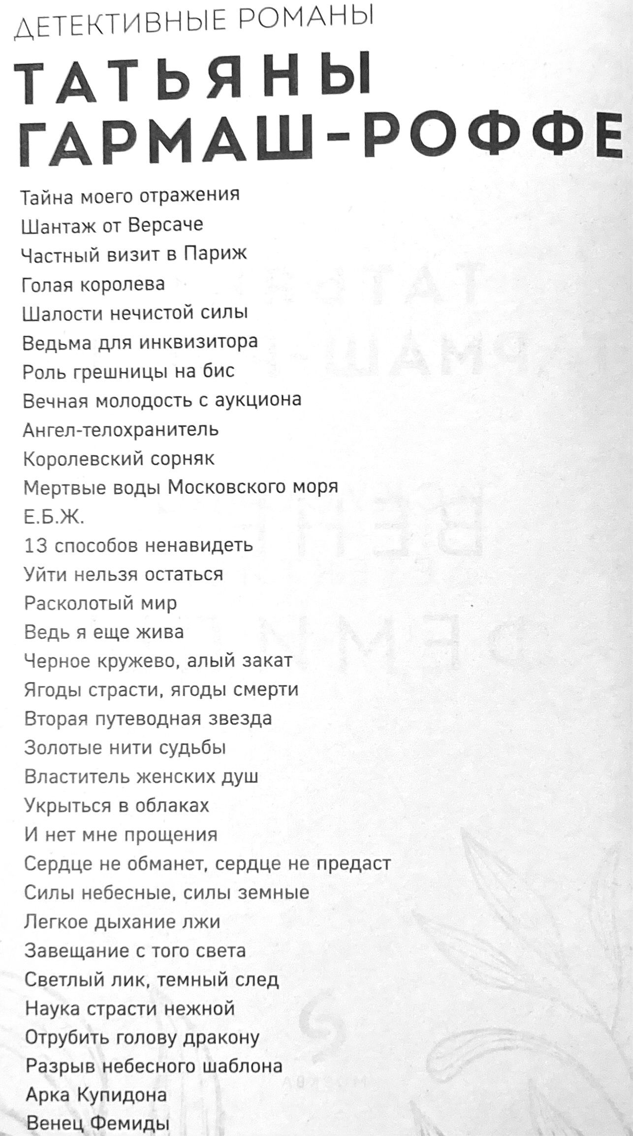 Tatjana Garmaša-Rofa ļoti labi zina, kādam jābūt īstam detektīvstāstam, un savos romānos ievēro žanra likumus. Teātra kritiķe prot konstruēt dialogus un sajūtu dramaturģiju. Neparasta personība, viņa piešķir varoņiem daļu savas harizmas. Sižeta pavērsienu neparedzamība, precizitāte loģikā un detaļās, psiholoģiskais autentiskums sajūtu aprakstā – tāda ir detektīves Tatjanas Garmašas-Rofas māksla.