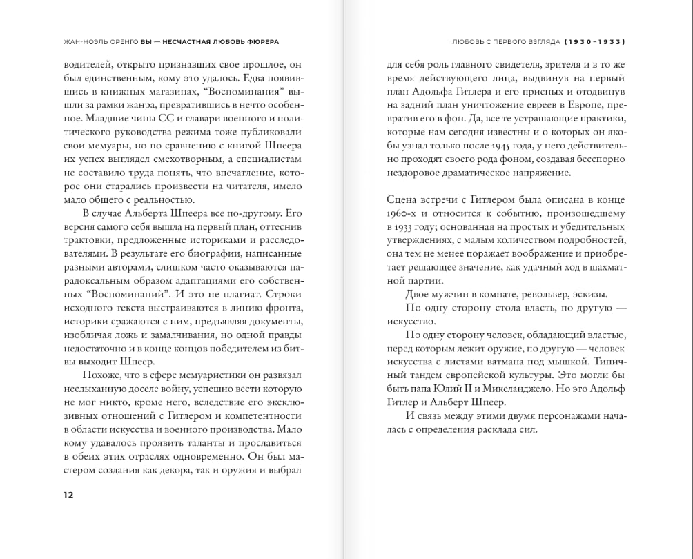 Šī grāmata ir stāsts par vienu no visbriesmīgākajām falsifikācijām vācu nacisma vēsturē. Izpētot epizodes no Špēra dzīves, aizpildot viņa vietas vietās, kur viņš apdomīgi klusē, un balstoties uz aculiecinieku stāstījumiem, tostarp vēsturnieces Gitas Serenijas, kura vairākkārt tikusies ar Špēru, stāstiem, autors piedāvā mums aizraujošu stāstu par vīrieti, kuru viens no viņa palīgiem reiz nosauca par "fīrera nelaimīgo mīlestību".