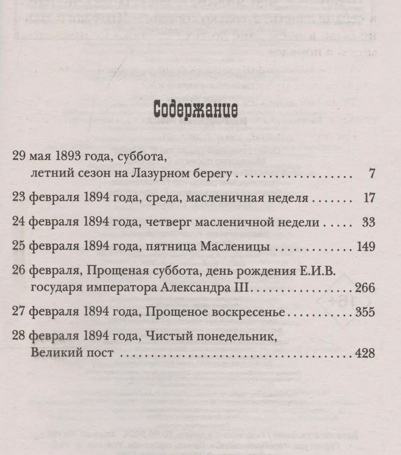 Romāns ir Puškina, Kerna un Vanzarova izmeklēšanas turpinājums. Sižets risinās Maskavas Masļeņicā: dīvainos apstākļos mirst cilvēki, kuriem jau bija izdevies apdrošināt savu dzīvību...