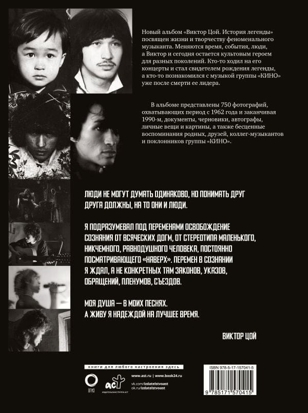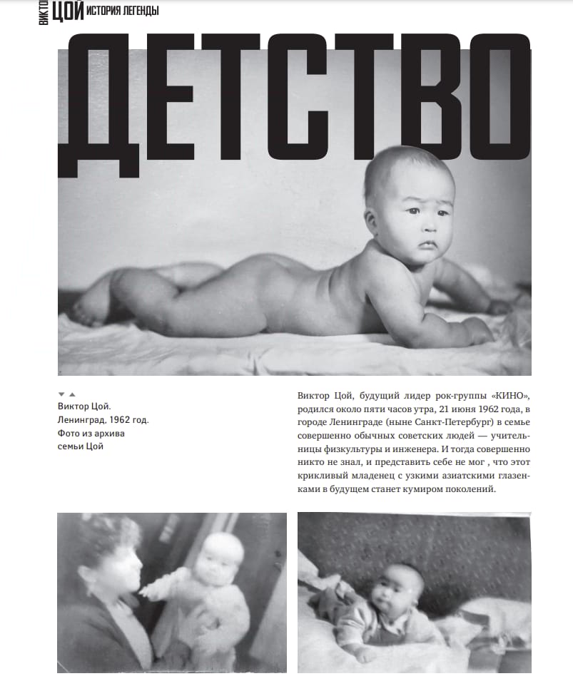 Jauns albums Victor Tsoi. Leģendas vēsture veltīta fenomenāla mūziķa dzīvei un darbam. Laiks, notikumi, cilvēki mainās, un Viktors paliek kulta varonis dažādām paaudzēm. Kāds devās uz viņa koncertiem un bija liecinieks leģendas dzimšanai, un kāds iepazinās ar grupas „Kino" mūziku pēc tās līdera nāves. Albumā ir iekļautas 750 fotogrāfijas, kas aptver laika posmu no 1962. līdz 1990. gadam, dokumenti, uzmetumi, autogrāfi, personiskās mantas un gleznas, kā arī nenovērtējamas atmiņas par grupas „Kino" radiniekiem, draugiem, kolēģiem mūziķiem un faniem.