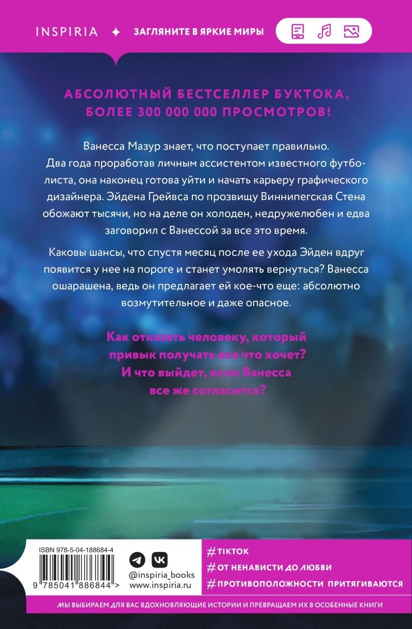 Vanesa Mazūra zina, ka rīkojas pareizi. Pēc diviem gadiem, strādājot par slavena futbolista personīgo asistenti, viņa beidzot ir gatava aiziet un veidot karjeru kā grafikas dizaineris. Eidens Greivss, saukts par "Vinipegas mūri", ir tūkstošiem cilvēku dievināts, taču patiesībā viņš ir auksts, nedraudzīgs un visu šo laiku tikpat kā nav runājis ar Vanesu. Kāda ir iespējamība, ka mēnesi pēc viņas aiziešanas Eidens pēkšņi parādīsies uz viņas sliekšņa, lūdzot viņu atgriezties? Vanesa ir apstulbusi, jo viņš viņai piedāvā kaut ko citu: kaut ko pilnīgi nekaunīgu un pat bīstamu. Kā viņa var atteikt vīrietim, kurš ir pieradis saņemt visu, ko vēlas? Un kas notiks, ja Vanesa piekritīs?