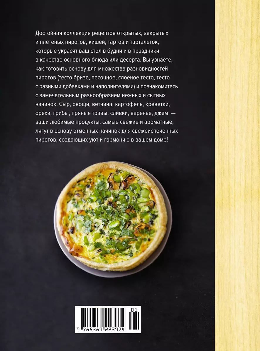 Pieklājīgs kolekcija receptes atvērtu, slēgts un pīrāgu, quiche, tarts un tarts, kas rotā savu galdu darba dienās un svētku kā galvenais ēdiens vai deserts. Jūs uzzināsiet, kā sagatavot pamatu daudzām pīrāgu šķirnēm (pietiekama brīze, smiltis, uzpūsta mīkla, mīkla ar dažādām piedevām un pildvielām) un iepazīsieties ar brīnišķīgu maiga un sirsnīga pildījuma daudzveidību. Siers, dārzeņi, šķiņķis, kartupeļi, garneles, rieksti, sēnes, pikanti garšaugi, krējums, ievārījums, ievārījums - Jūsu iecienītākie produkti, svaigākie un smaržīgākie, veidos lielisku pildījumu svaigi ceptiem pīrāgiem, radot mājīgumu un harmoniju Jūsu mājās!