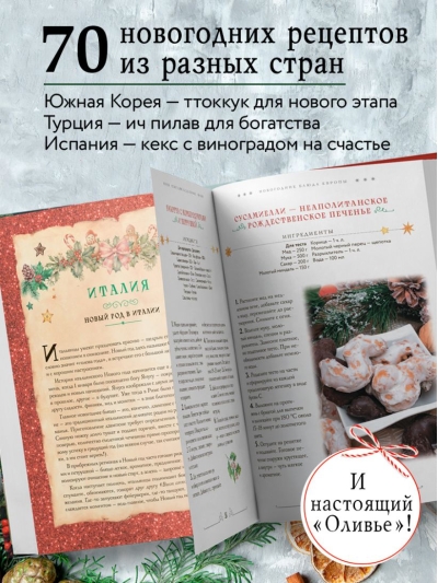 Apnicis Olivjē salāti un siļķes zem kažoka? Sapņojat par maģisku Jaungada galdu, kas pārsteigs un iepriecinās jūsu mīļotos? Tad šī grāmata ir jūsu biļete uz kulinārijas ceļojumu cauri spilgtākajām un gardākajām Jaungada tradīcijām no visas pasaules!