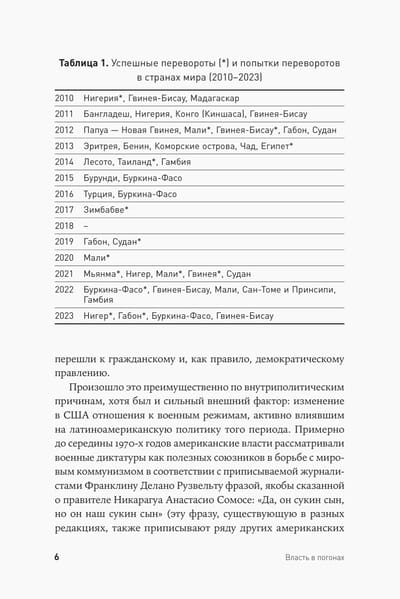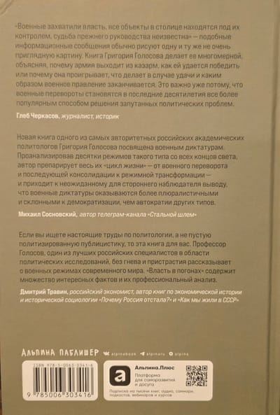 Laikā no 2020. līdz 2023. gadam pasaule piedzīvoja tikpat daudz veiksmīgu militāro apvērsumu kā visā iepriekšējā desmitgadē. Cerības uz globālu demokratizāciju nav piepildījušās. Starptautisko institūciju vājināšanās, iekšpolitiskās krīzes, ekonomiskās grūtības un tautas neapmierinātība rada augsni militāru režīmu nākšanai pie varas. Savā grāmatā politikas zinātņu doktors Grigorijs Golosovs pēta militāro režīmu atdzimšanas iemeslus, to valdīšanas dinamiku, mijiedarbības ar civilo eliti specifiku, represīvo struktūru lomu un ideoloģiju, kā arī sniedz instrumentus šo parādību neatkarīgai analīzei. Izpētot militāro režīmu struktūru un to darbību, jūs varēsiet labāk izprast politisko pārmaiņu loģiku pasaulē, kur vara arvien vairāk nonāk militāristu rokās.