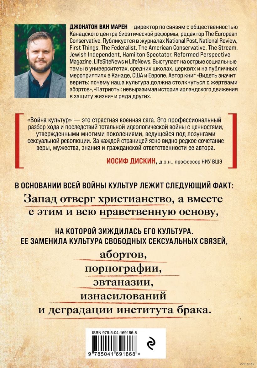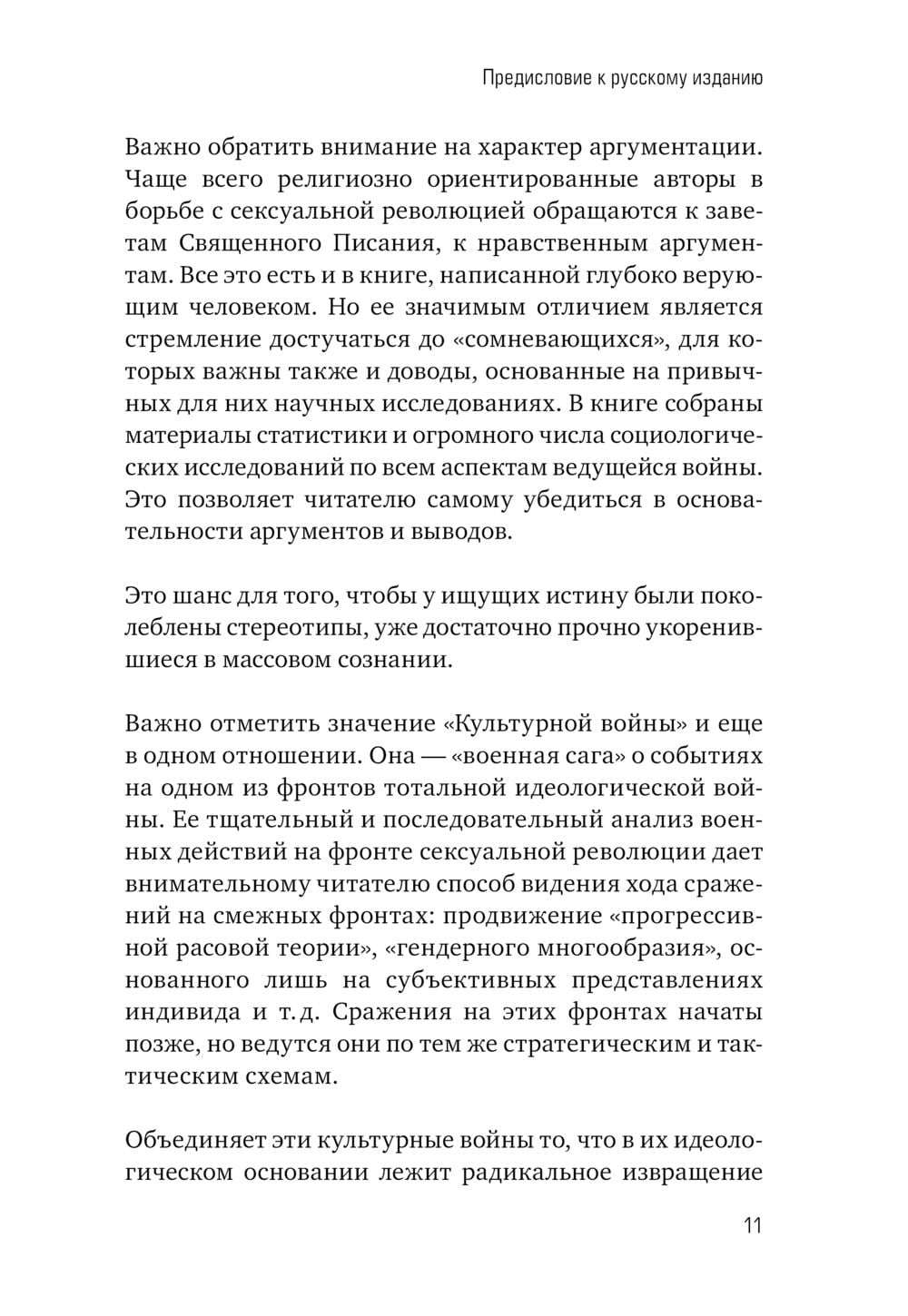 Kanādas slavenā sociologa un konservatīvā kristieša grāmata. Profesionāla analīze par ideoloģisko karu, kas norisinās zem seksuālās revolūcijas saukļiem. Rietumu sabiedrības un establišmenta morālā degradācija, galvenokārt uz ASV piemēra. Tajā skartas abortu, netradicionālo seksuālo attiecību, eitanāzijas un citas tēmas. Noderīga sociologiem, antropologiem, politologiem un studentiem. Tā būs interesanta plašam lasītāju lokam.
