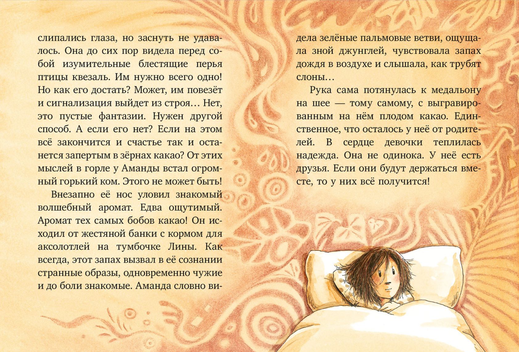 Katrā grāmatā bērni no bērnunama dodas meklēt jaunu sastāvdaļu maģiskajai laimes kakao. Ceturtās sastāvdaļas meklējumi aizved piedzīvojumus kārojošo Amandu un viņas draugus uz muzeju. Tur viņi atrod seno maiju kroni, kas izgatavota no ketsalputna mirdzošajām spalvām. Bērniem ir nepieciešama tikai viena spalva, lai pagatavotu laimes kakao! Taču kronis tiek rūpīgi sargāts. Bērniem ir nepieciešams patiesi labs plāns... Vai Amandai un viņas draugiem izdosies iegūt spalvu?
