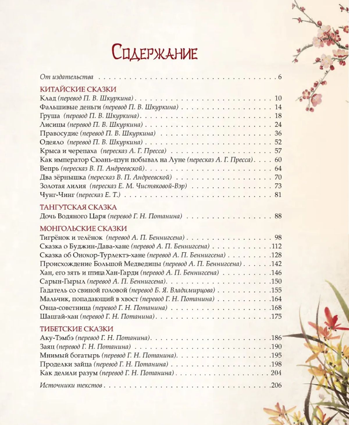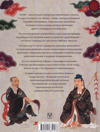 Ķīna ir senākā un noslēpumainākā civilizācija uz planētas. Un viena no tās noslēpumu atslēgām ir Debesu impērijas mīti, leģendas un nostāsti - maģisku stāstu un pasaku krātuve, kuras motīvi caurvij pat Holivudas kinolentes. Šī unikālā grāmata ir veidota no dažādu tautu pasakām, kas bijušas Ķīnas sastāvā visā tās vēsturē - ne tikai ķīniešu, bet arī mongoļu, tibetiešu un tangutu. Lasītāju gaida tikšanās ar nodevīgiem jūras valdniekiem un skaistām princesēm, lapsu vilkačiem un uguni elpojošiem pūķiem, drosmīgiem varoņiem un draudīgiem putniem hana-gariem, jakšu dēmoniem un gudriem zīlniekiem... Visas šīs pasakas pirms vairāk nekā simts gadiem savāca un tulkoja krievu austrumu zinātnieki un rakstnieki, daudzas no tām kopš tā laika nav atkārtoti izdotas. Šajā jaunajā izdevumā labākās Ķīnas pasakas pirmo reizi tiek piedāvātas kopā ar plašu krāsainu ilustrāciju kolekciju, kas iepazīstinās ar visām tradicionālās ķīniešu tēlotājas mākslas šķautnēm.