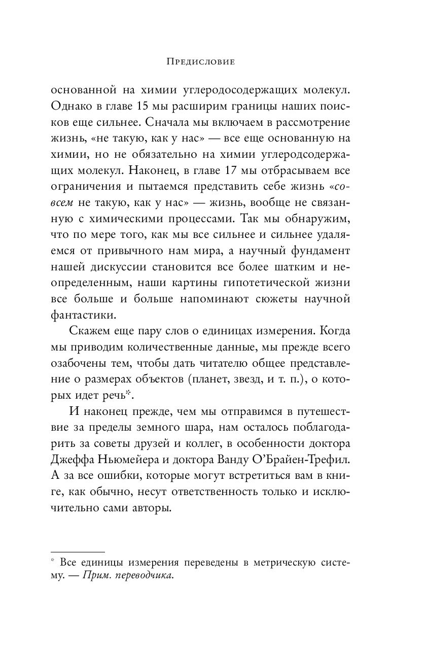 Zinātnieki Trefils un Vasaras, fizikas un astronomijas profesori, aicina mūs doties iedomātā ceļojumā, sava veida safari cauri tālām galaktikām un eksoplanētām, lai meklētu dzīvību, kas, iespējams, tur pastāv. Izmantojot jaunākos zinātniskos pierādījumus, viņi apgalvo: Kā un kāpēc dzīvība varētu pastāvēt uz citām planētām? Kā tas varētu attīstīties "pilnīgi izraktos" apstākļos - īpaši zemā temperatūrā un īpaši lielā gravitācijas pakāpē? Vai ir iespējams atkārtot dzīvības ceļu uz citām planētām? Cik liela ir iespējamība, ka dzīvība būs neorganiska un mākslīga, pamatojoties uz citiem elementiem, nevis oglekli? Katras sadaļas beigās autori min humoristiskus argumentus, lai pierādītu vai atspēkotu, kā un kāpēc konkrēta dzīve varētu kļūt par vienīgo iespējamo lietu Visumā.