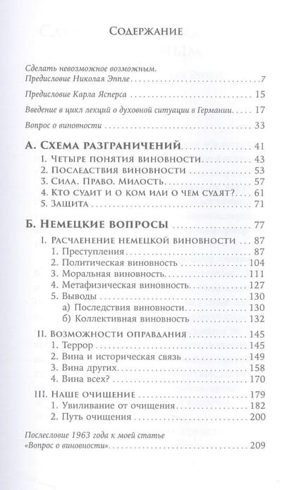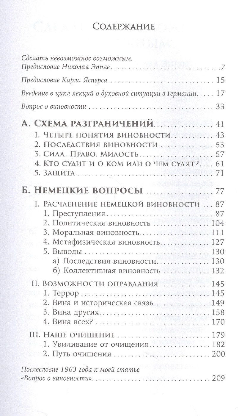 20. gadsimta izcilākā domātāja, vācu filozofa, psihologa un psihiatra Karla Jaspersa traktāts, kas sarakstīts pēc Vācijas fašisma sakāves, nacistu noziedznieku Nirnbergas prāvas laikā. Tajā laikā sakautā Vācija atradās drupās, un sabiedrība bija nemierā un dziļā depresijā. Vācu tautas priekšā bija uzdevums atjaunot sevi, veidot jaunu nacionālo identitāti - "izkausēt, atdzimt, atmest visu kaitīgo". Jaspers izvirza sāpīgo jautājumu, vai visi vācieši ir atbildīgi par nacistiskā režīma noziegumiem, un pirmo reizi izšķir četrus vainas veidus: juridisko, politisko, morālo un metafizisko. Šis traktāts ir publicēts klasiskajā Solomona Apta tulkojumā.