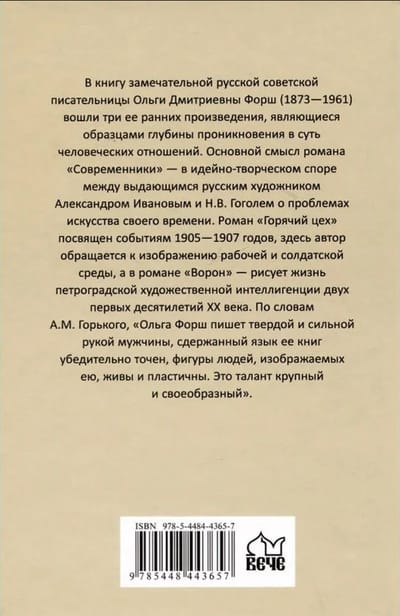 Ievērojamās krievu padomju rakstnieces Olgas Dmitrievnas Foršas (1873—1961) grāmatā iekļauti trīs viņas agrīnie darbi, kas ir piemēri iespiešanās dziļumam cilvēka attiecību būtībā. romāna „Zemeslaiki” galvenā nozīme ir izcila krievu mākslinieka Aleksandra Ivanova un N.V. ideoloģiskajā un radošajā strīdā. Gogols par sava laika mākslas problēmām. romāns “Hot Workshop” veltīts 1905.-1907. gada notikumiem, šeit autors pievēršas darba un karavīra vides tēlam, bet romānā “Rauklis” – glezno 20. gadsimta pirmo divu desmitgažu Petrogradas mākslinieciskās inteliģences dzīvi. Olga Forša raksta ar stingru un spēcīgu vīrieša roku, viņas grāmatu atturīgā valoda ir pārliecinoši precīza, viņas attēloto cilvēku figūras ir dzīvas un plastiskas. Šis talants ir liels un savdabīgs.