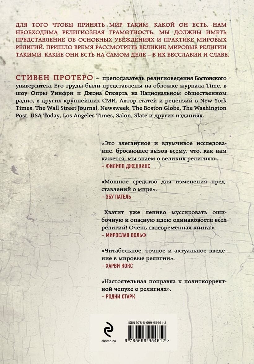 Šī grāmata iepazīstina ar galvenajām pasaules reliģijām: jūdaismu, kristietību, islāmu, hinduismu, budismu, konfūcismu, daoismu, jorubu reliģiju, kā arī papildu nodaļu par ateismu, jo tās patiešām ir - visā savā godībā un negodā. Jūs uzzināsiet, no kādām reliģijām miljoniem cilvēku ir izaudzis; no kā pasaules lielās reliģijas sola un ko tās pieprasa pretī; kādas cilvēku problēmas patiesībā atrisina šī vai šī reliģija; kas notiek mūsdienu globālajā reliģiskajā tirgū; kā reliģija var kļūt par vienu no lielākajiem ļaunajiem spēkiem vēsturē. Stīvens Protero ir ne tikai atzīts reliģisko pētījumu eksperts, bet arī vārdu meistars, tāpēc „Aktīvas reliģijas..." ir gan lietpratīgs paziņojums par galveno ideju, praksi un lielo reliģiju vērtībām, gan aizraujošs asprātīgs stāsts par cilvēku meklējumiem pēc Dieva un vēlmi kļūt perfektākai pagātnē un tagadnē.