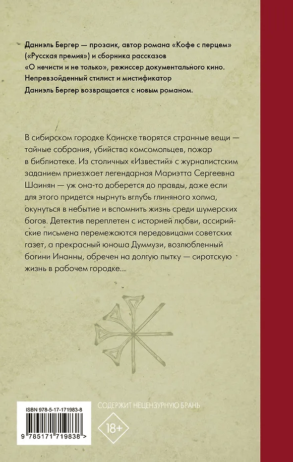 Detektīvstāsts, kas savijas ar mīlas stāstu, asīriešu raksti mijas ar padomju laikrakstu ievadrakstiem, un izskatīgais jauneklis Dummuzi, dievietes Inannas mīļotais, ir lemts ilgām mokām – bāreņa dzīvei strādnieku pilsētā...