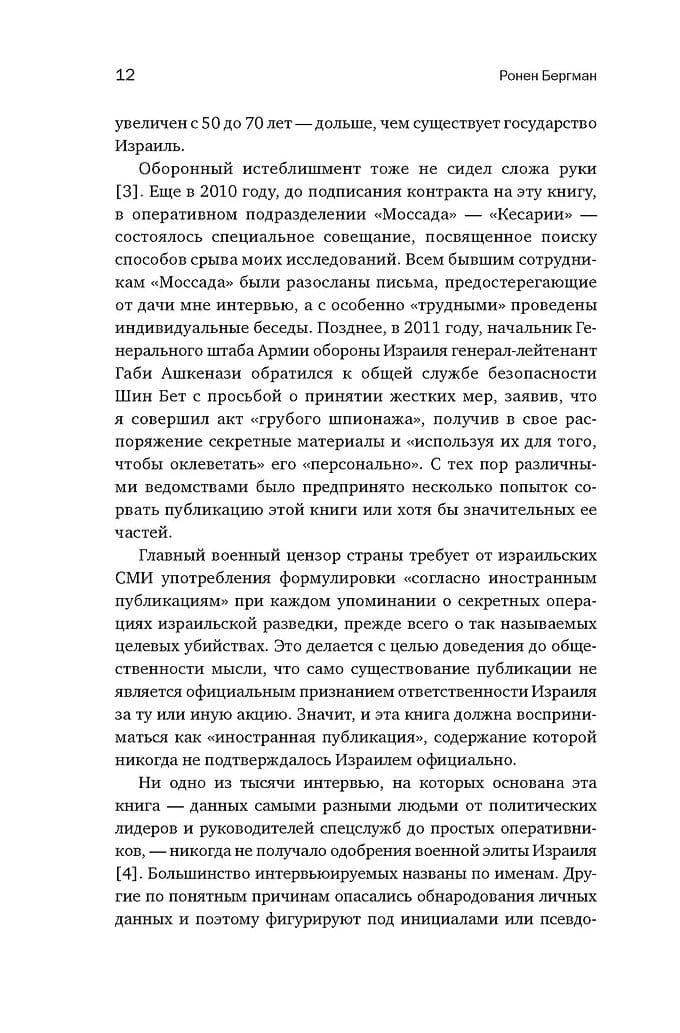Izraēlas Valsts izveide 1948. gadā noveda pie tās izlūkdienesta — nāvējošākā pasaulē — izveides. Tās arsenālā vienmēr ir bijis īpašs ierocis: politiskas slepkavības. Mērķtiecīgas slepkavības ir izmantotas neskaitāmas reizes gan pret lieliem, gan maziem ienaidniekiem, tostarp preventīvi. Šī grāmata ir balstīta uz iepriekš ļoti slepeniem arhīva materiāliem un intervijām, no kurām nevienu neapstiprināja Izraēlas militārā elite. Slavenais militārais analītiķis Ronens Bergmans piedāvā aizraujošu pārskatu par mērķtiecīgām slepkavību programmām: to panākumiem un neveiksmēm, kā arī morālo un politisko cenu, ko samaksāja tie, kas apstiprināja un īstenoja šīs misijas.
