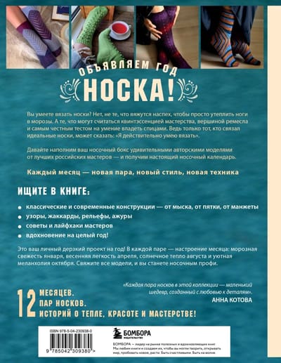 Šajā grāmatā ir 12 unikāli raksti, ko radījušas labākās Krievijas adītājas — pa vienam katram gada mēnesim. Dažādi gadalaiki, dažādas noskaņas, stili, dizaini un tehnikas: no klasiskā līdz eksperimentālajam, no minimālisma līdz vau faktoram. Žakarda? Noteikti. Ažūra? Protams. Neparasti papēži un purngali? Noteikti. Šī grāmata ir jūsu personīgais adīšanas projekts šim gadam.