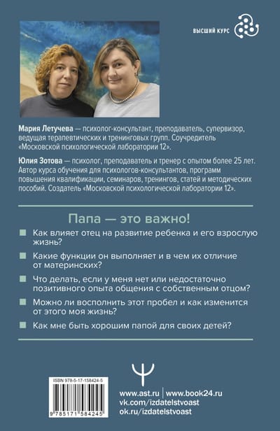 Atbildēm uz šiem jautājumiem ir veltīta psihologu Jūlijas Zotovas un Marijas Letučevas grāmata. Šis ir otrais - papildinātais un pārstrādātais - bestsellera "Viss par tēti" izdevums. Autores paplašinājušas saturu ar detalizētu tēva funkciju aprakstu, kā arī pārskatījušas nodaļu par tēva ietekmi uz vīriešu scenārijiem. Pievienota nodaļa ar pozitīvo scenāriju piemēriem attiecībās.