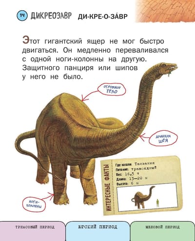 Šī ir īsta enciklopēdija bērniem: tikai vissvarīgākais, viegli iegaumējams – un ar lieliem burtiem. Grāmata ar lieliem un detalizētiem attēliem satur interesantu informāciju par 223 plēsīgajiem un zālēdājiem dinozauriem.