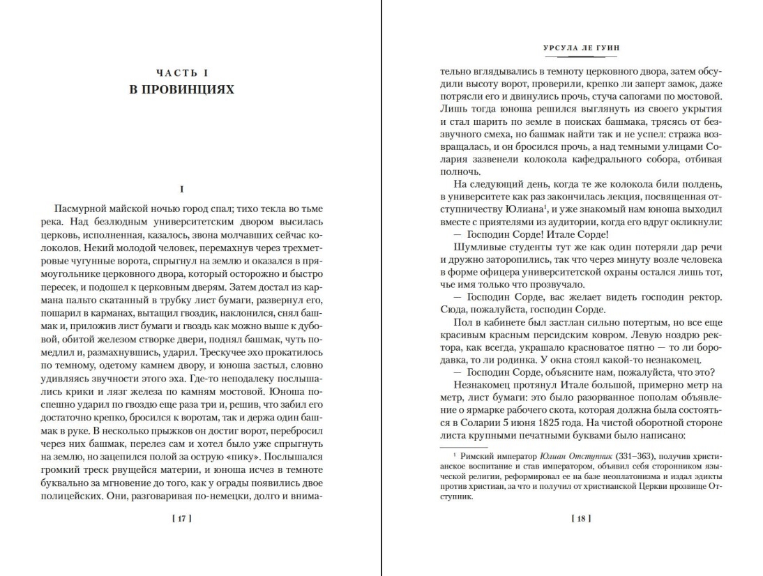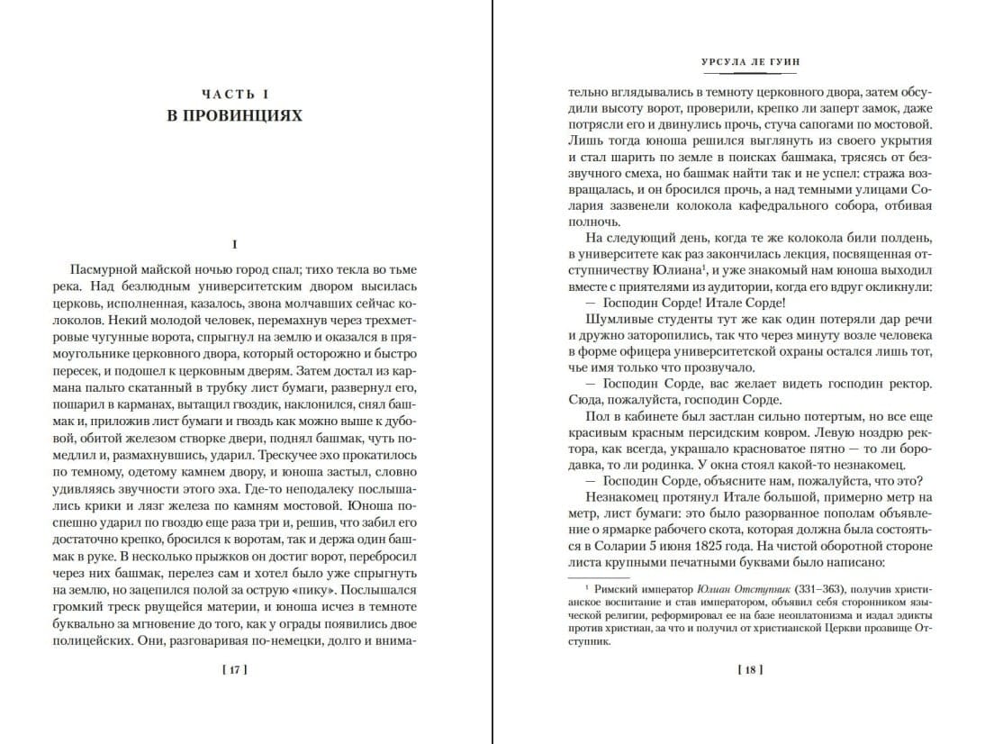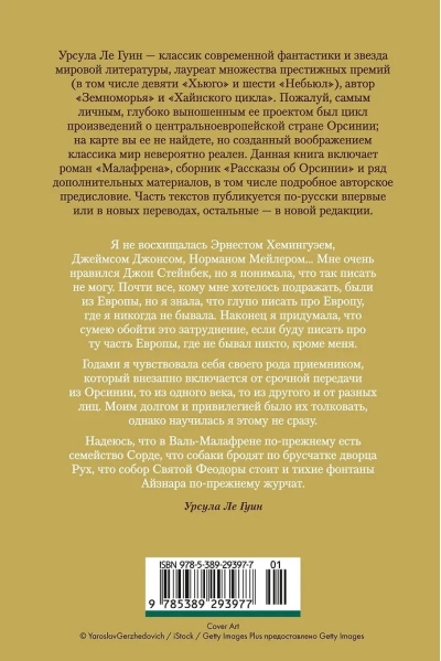 Le Gīna, kas ir tā sauktās mīkstās humanitārās daiļliteratūras pīlārs, ievērojamu uzmanību veltīja socioloģijai un psiholoģijai, starpkultūru konfliktiem un antropoloģijai. Iespējams, viņas personiskākais, dziļi lolotais projekts bija darbu sērija par Centrāleiropas valsti Orsīniju ar tās augstienes galvaspilsētu un senajiem mežiem, liktenīgajām kaislībām un gadsimtiem seno mitoloģiju. Orsīniju neatradīsiet kartē, taču pasaule, ko radījusi klasiskās autores iztēle, ir neticami reāla – katrs centimetrs, katra tās izdomātās, tomēr pilnīgi pazīstamās vēstures epizode.