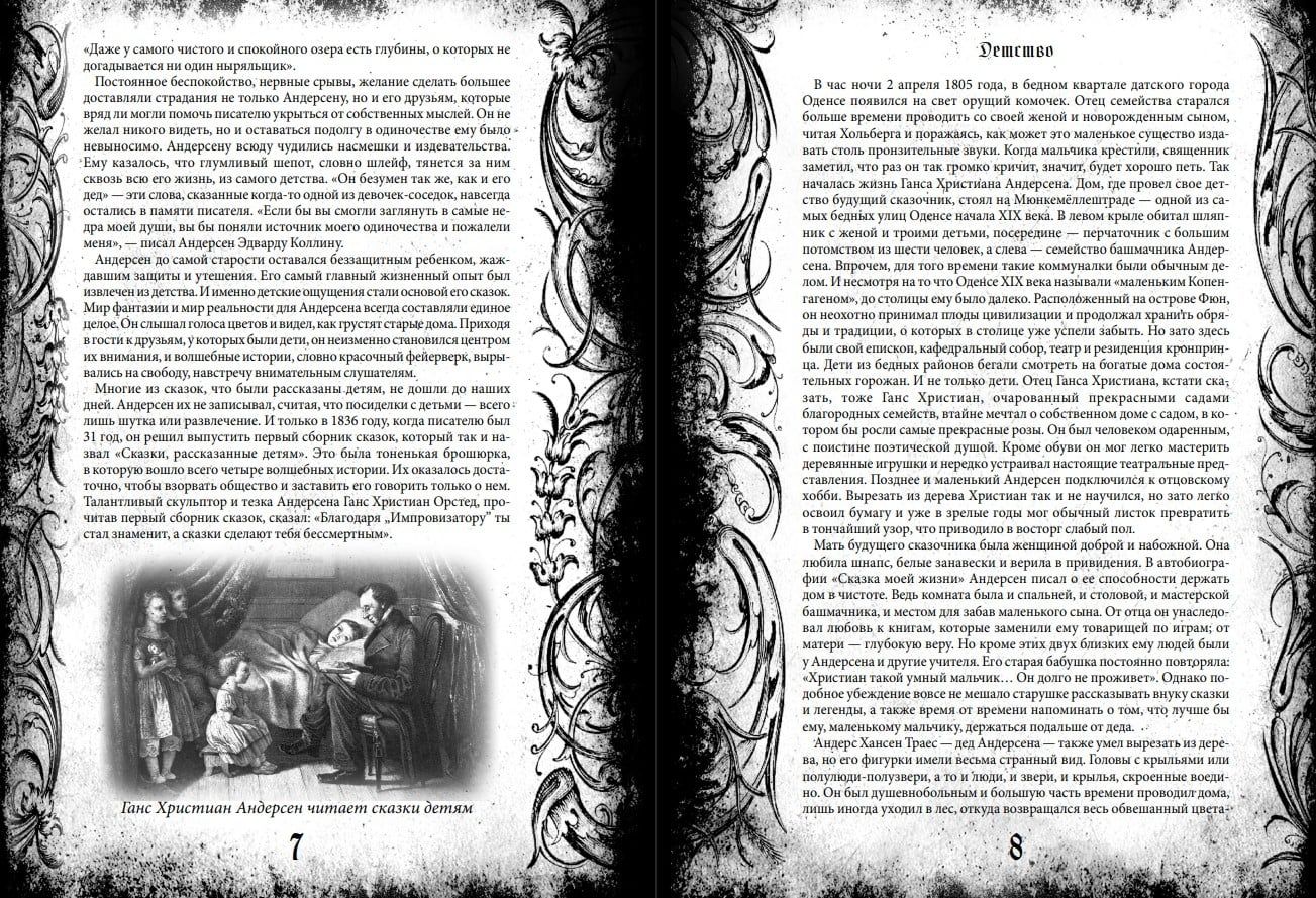 Neviena bērna bērnība nebūtu pilnīga bez Hansa Kristiana Andersena maģiskajiem stāstiem. Viņa stāstiem piemīt unikāla atmosfēra, un to tēli ir pazīstami ikvienam: drosmīgā Gerda, kas nebaidās no Sniega karalienes; maigā Elīza, kas gatava uz visu, lai glābtu savus gulbju brāļus; trauslā Īkstīte; un nelokāmais alvas zaldātiņš... Andersena brīnumainajā pasaulē atdzīvojas pat visparastākās lietas: pārvēršoties dzīvās radībās, tās naktī sarunājas, slēdz mieru un strīdas, tiecas pēc mīlestības un laimes.