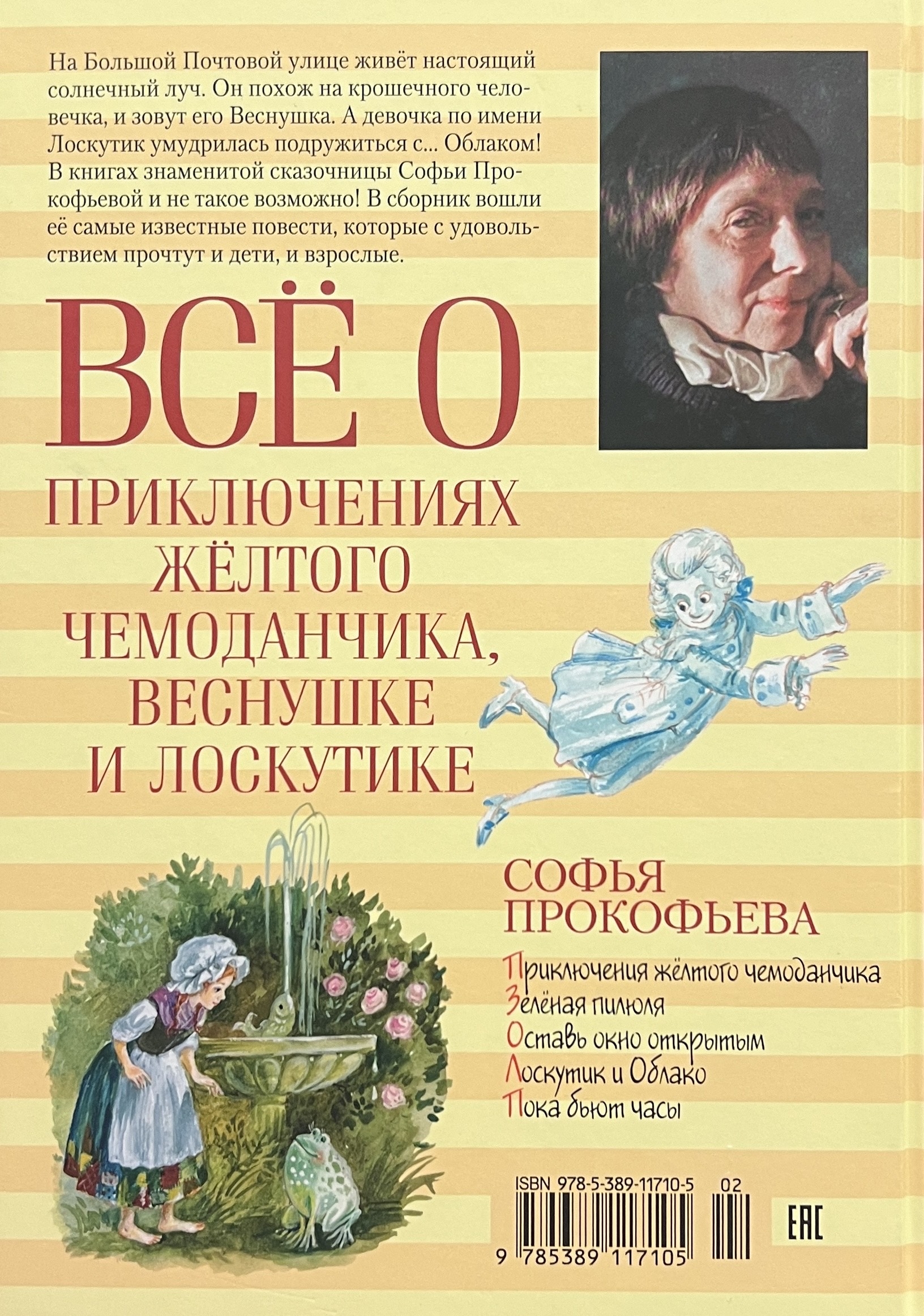Kaut kur netālu dzīvo Bērnu ārsts - saka, ka viņš var izārstēt jebkuru slimību. Tiem, kam patīk melot, viņam ir zāles, ko sauc par pretvīrusu, bailīgajiem - konfektes "Īsta drosme", bet slinkajiem - neatsaucams līdzeklis, zaļā tablete. Meitene Katja no Lielās Pohtovas ielas draudzējas ar īstu saules staru. Viņš izskatās kā maziņš cilvēciņš, un viņa vārds ir Vesņuška. Vienkārši kādu dienu viņš atrāpās no saules un palika uz zemes - galu galā, kurš gan tā nedara? Un šeit meitenei vārdā Skrampītis ir izdevies sadraudzēties ar... Mākoņu! Visi šie brīnumi viegli notiek slavenās stāstnieces Sofijas Prokofjevas grāmatās, kuras lasījusi ne viena vien skolēnu paaudze. Tā paša nosaukuma filma, kas uzņemta pēc "Dzeltenā kofera piedzīvojumu" motīviem, ir kļuvusi par īstu padomju kino klasiku. Krājumā iekļauti rakstnieces slavenākie darbi, kurus ar prieku lasīs gan bērni, gan pieaugušie.
