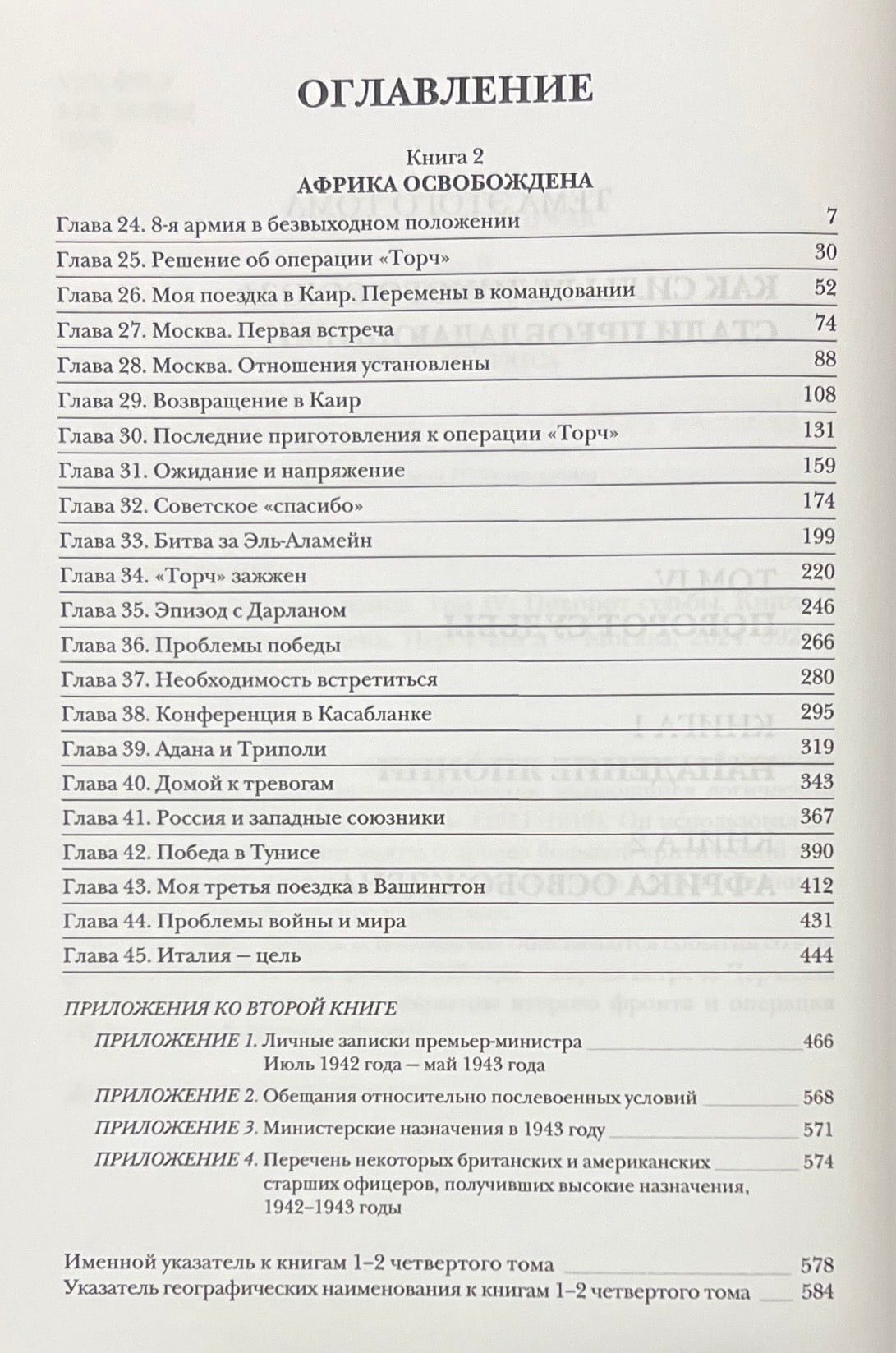 Septītajā grāmatā "Japānas uzbrukums" aprakstīti 1942. gada pirmās puses notikumi, kas Lielbritānijai izvērtās ārkārtīgi nelabvēlīgi - straujā Japānas ofensīva, Singapūras, Nīderlandes Austrumindijas un Birmas kapitulācija, virkne graujošu sakāvju Tuvajos Austrumos Rommela spēku uzbrukuma apstākļos, Maltas un Arktikas konvoju neveiksme Krievijas virzienā. Astotās grāmatas "Āfrika atbrīvota" saturs apraksta notikumus no 1942. gada otrās puses līdz 1943. gada maijam - Čērčila pirmo tikšanos ar Staļinu, gatavošanos otrās frontes atklāšanai un operāciju "Lāpa" - Āfrikas atbrīvošanu.