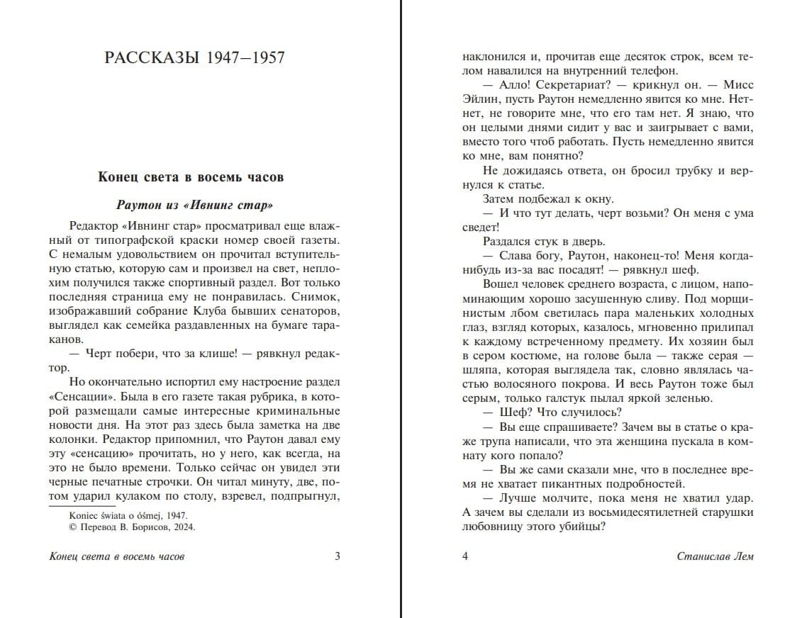 Staņislava Lema īsproza ir īsts fantastisku, filozofisku un grotesku stāstu krājums, kas aptver plašu tēmu loku: sākot no nekompetentu valdības ierēdņu neveiksmēm līdz bioloģisko ieroču izstrādei un kontaktiem ar ārpuszemes saprātu. Šajā grāmatā iekļauti atlasīti stāsti no 1924. līdz 1945. gadam, kā arī krājumi "Sezams" un "Iebrukums no Aldebaranas".