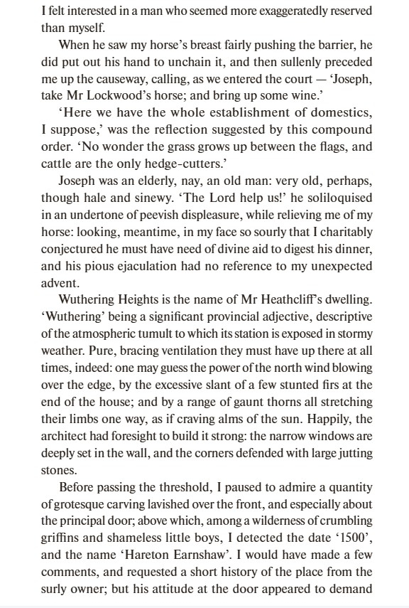 Katrīna, sieviete, kas cenšas dzīvot pēc saviem noteikumiem; bārenis Hītklifs, kura rase un etniskā piederība joprojām tiek apspriesta; vecā ģimenes savrupmāja, kas pazudusi Jorkšīras purvos; spokainas parādības un virkne neuzticamu stāstītāju – labi izglītotā Brontē to visu savij noslēpumainā, valdzinošā stāstījumā.