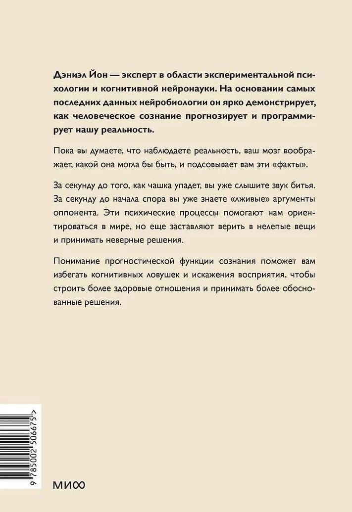 Vai jūsu smadzenes interpretē pasauli vai halucinē? Kamēr jūs domājat, ka novērojat realitāti, jūsu smadzenes iztēlojas, kāda tā varētu būt, un baro jūs ar šiem "faktiem". Daniels Jons ir kognitīvās neirozinātnes eksperts. Izmantojot jaunākos neirozinātnes datus, viņš spilgti demonstrē, kā cilvēka prāts paredz un programmē mūsu realitāti.
