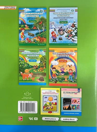 Didaktiskais materiāls nodarbībām par ekoloģiju vidējā pirmsskolas vecuma bērniem (no 4 līdz 5 gadiem) ir paredzēts pieaugušā un bērna (vai bērnu grupas) kopīgām nodarbībām. Didaktisko materiālu pamatā ir kursa "Vides izglītība" daļēja programma, tie ir krāsaini noformēti un izmantojami gan individuālām nodarbībām ar bērnu mājās, gan grupu nodarbībām ECE centrā. Darbojoties pēc piedāvātās programmas, bērni ar pieaugušā palīdzību nepiespiestā un interesantā rotaļu formā iepazīst apkārtējo pasauli, apgūst primārās zināšanas par gadalaiku maiņu un pazīmēm, apgūst loģiskās domāšanas prasmes, trenē uzmanību un vērīgumu. Nodarbības ar didaktiskiem materiāliem palīdzēs bērniem arī paplašināt vārdu krājumu un intensificēt runu