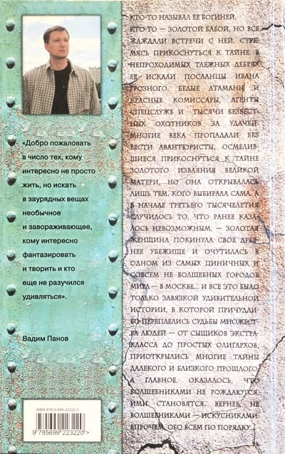 Daži viņu sauca par Dievieti, daži - par Zelta Sievieti, bet visi ilgojās viņu satikt, tiecoties pieskarties Noslēpumam. Necaurredzamajā taigas tuksnesī viņu meklēja Ivana Briesmīgā vēstneši, baltie atamani un sarkanie komisāri, slepenā dienesta aģenti un tūkstošiem nezināmu laimes mednieku. Daudzus gadsimtus piedzīvojumu meklētāji, kas uzdrošinājās pieskarties Lielās Mātes zelta statujas noslēpumam, pazuda bez pēdām, bet viņa atklāja sevi tikai tiem, kurus pati izvēlējās. Un trešās tūkstošgades sākumā notika kaut kas tāds, kas iepriekš šķita neiespējams - Zelta Sieviete pameta savu seno patvērumu un nonāca vienā no ciniskākajām un nepavisam ne maģiskākajām pilsētām pasaulē - Maskavā... Un tas viss bija tikai sākums pārsteidzošam stāstam, kurā daudzu cilvēku likteņi bija sarežģīti savijušies - sākot no ekstraklases detektīviem līdz vienkāršiem oligarhiem, tika atklāti daudzi tālas un nesenas pagātnes noslēpumi, un pats galvenais, izrādījās, ka burvji nepiedzimst, viņi par tiem kļūst. Pareizāk sakot, nevis burvji - Amatnieki. Tomēr vispirms par visu svarīgāko...