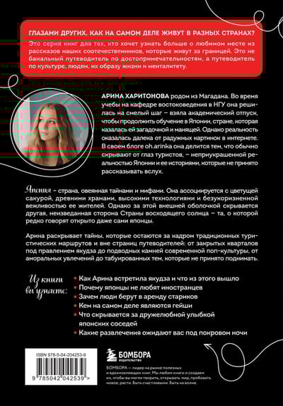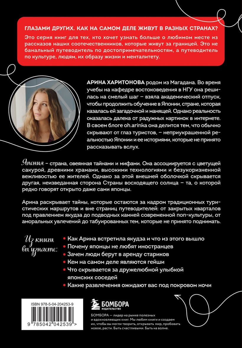 Autore Arina Kharitonova jau piecus gadus dzīvo Tokijā, šajā laikā ļoti cieši iepazinusies ar pilsētas kriminālo un nepievilcīgo pusi, ar kuru aktīvi dalās ar saviem abonentiem sociālajos tīklos.
