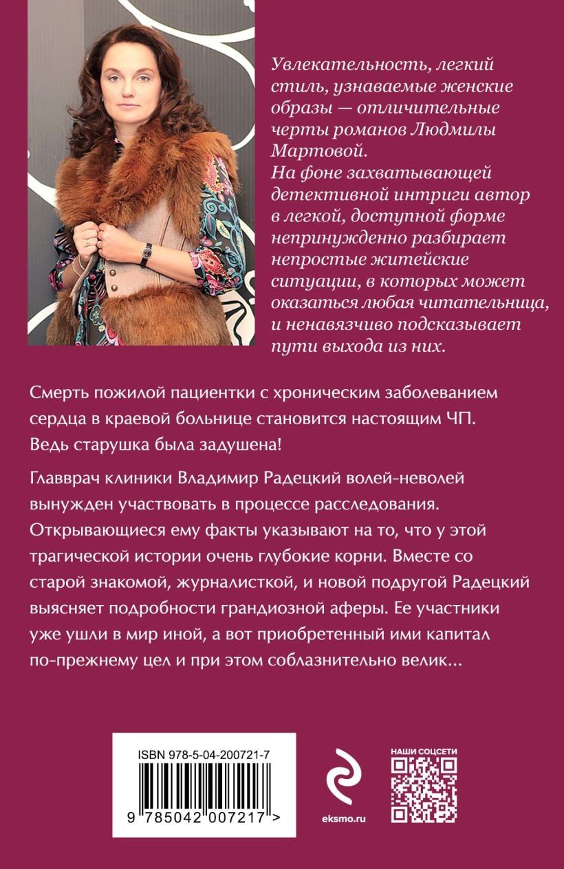 Gados vecas pacientes ar hronisku sirds slimību nāve reģionālajā slimnīcā kļūst par īstu ārkārtas gadījumu, jo vecā sieviete tika nosmacēta! Klīnikas galvenais ārsts Vladimirs Radeckis ir spiests piedalīties izmeklēšanas procesā. Fakti, ko viņš atklāj, liecina, ka šim traģiskajam stāstam ir ļoti dziļas saknes. Kopā ar vecu paziņu žurnālistu un jaunu draugu Radeckis noskaidro grandiozās krāpšanas detaļas. Tās dalībnieki jau ir miruši, bet iegūtais kapitāls joprojām ir neskarts un vilinoši liels.....