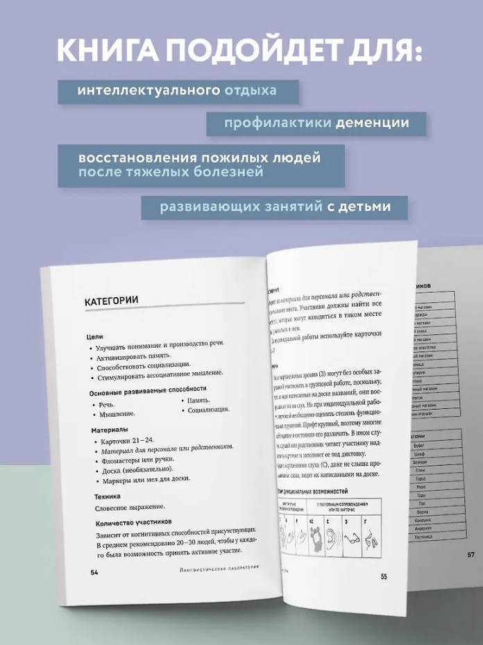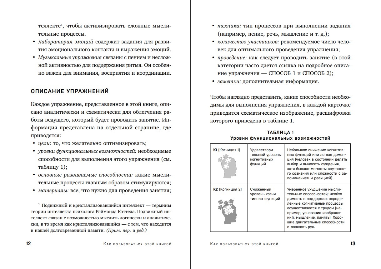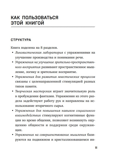 Cilvēkiem novecojot, viņu sniegums samazinās, un vājinās kognitīvās prasmes, piemēram, atmiņa, uzmanība, iztēle, runa un informācijas apstrāde. Laura Pedrinelli Carrara piedāvā unikālu efektīvu vingrinājumu metodi, lai jūs varētu ne tikai uzturēt smadzeņu veselību, bet arī patīkami pavadīt laiku, vingrojot mājās vai parkā kopā ar draugiem. Liels drukas teksts, iespēja strādāt individuāli vai grupā un dažādi vingrinājumi padara šo procesu ērtu un saistošu.