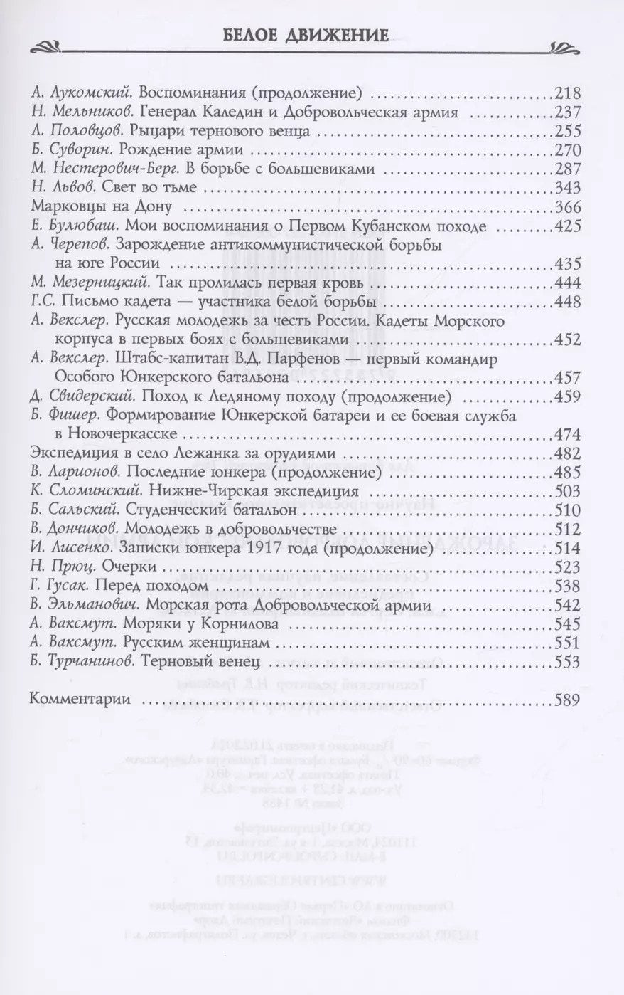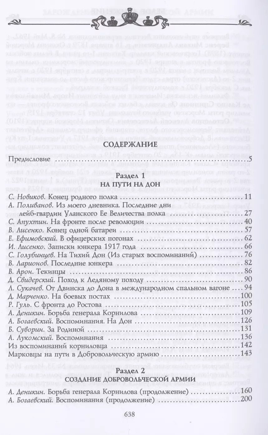Grāmata "Brīvprātīgo armijas izveide" ir pirmais sējums sērijā, kas veltīta Baltajai kustībai Krievijā, un iepazīstina lasītāju ar 1917. gada beigās - 1918. gada sākumā pie Donas un Kubanē notikušo notikumu dalībnieku atmiņām.