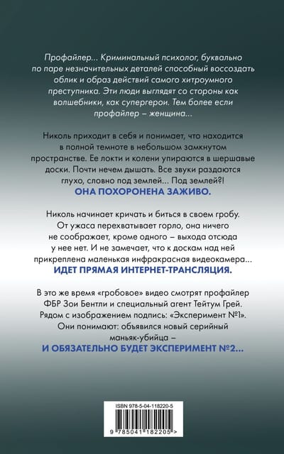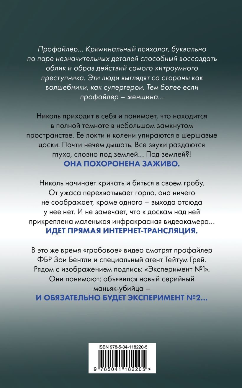 Tajā pašā laikā FIB profilētāja Zoja Bentlija un īpašais aģents Teitums Grejs skatās "zārka" video. Blakus attēlam ir paraksts "1. eksperiments". Viņi saprot: ir parādījies jauns sērijveida slepkava — un noteikti būs 2. eksperiments...