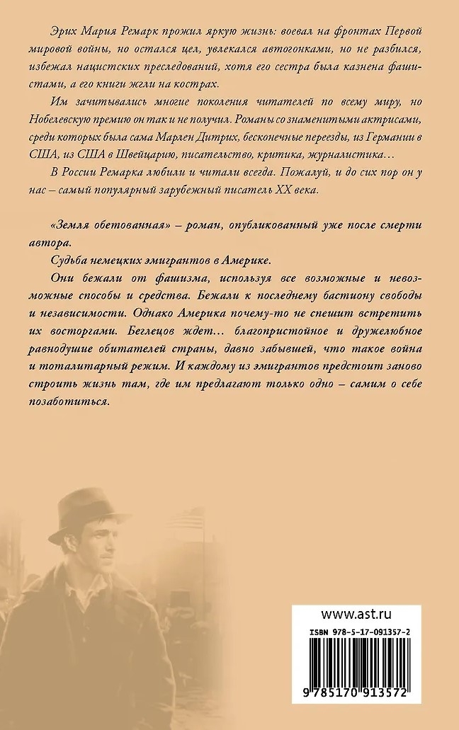 "Apsolītā zeme" ir romāns, kas publicēts pēc autora nāves. Tas seko līdzi vācu emigrantu liktenim uz Ameriku. Viņi bēga no fašisma, izmantojot visus iespējamos un neiespējamos līdzekļus un metodes. Viņi bēga uz pēdējo brīvības un neatkarības bastionu. Tomēr Amerika nez kāpēc nesteidzas viņus sagaidīt ar entuziasmu. Bēgļus sagaida... pieklājīga un draudzīga vienaldzība no valsts iedzīvotāju puses, kas jau sen ir aizmirsusi, kas ir karš un totalitāra vara. Un katram no emigrantiem ir jāatjauno sava dzīve vietā, kur viņiem tiek piedāvāts tikai viens: parūpēties par sevi pašiem.