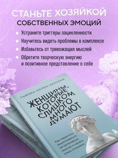 Psiholoģijas profesore Sūzena Nolena-Heksema sniedz piemērus no pacientu dzīves, kuri pārāk daudz domā un moka sevi ar negatīvām domām. Balstoties uz plašiem pētījumiem, viņa piedāvā konkrētas stratēģijas, ko varat izmantot, lai pārvarētu trauksmi, atbrīvotos no pagātnes pieredzes negatīvās ietekmes un pārietu uz jaunu apziņas un harmonijas līmeni.